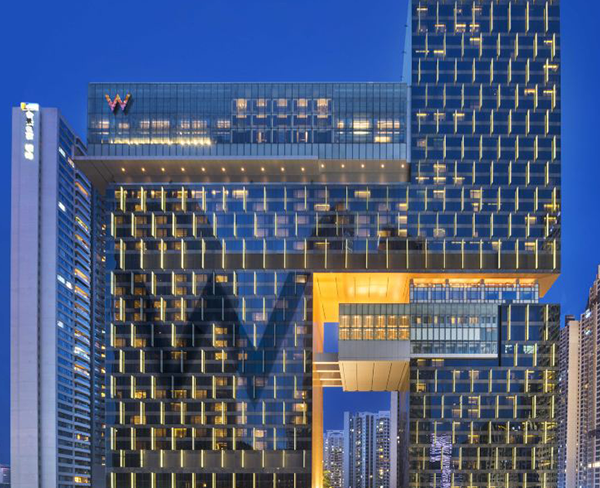 平安中心-深圳柏悅酒店,酒店核心區(qū)位于33-45層,空中大堂在33層。